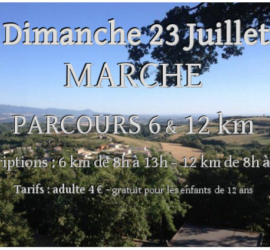VOGUE à GEYSSANS Dimanche 23 juillet Parcours de marche : 6 et 12 km Départ Salle Polyvalente Inscriptions : 6 km de 8h à 13h – 12 km de 8h à 11h Adultes 4 € – gratuit pour les enfants de moins de 12 ans Petite restauration possible à partir de 11h30 Concours Pétanque Familiale à partir de 14h Vogue organisée par le Comité des Fêtes avec le soutien de la Commune Contact : 06.59.30.16.54