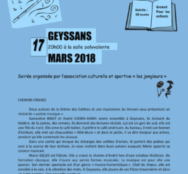 Samedi 03 Mars 2018, Karaoké à partir de 20h00 Rendez vous tous à la salle des fêtes de Geyssans. Soirée organisée par l’association Les Écureuils (parents d’élèves de Geyssans) Vous trouverez sur place de quoi grignoter (hot-dogs) mais aussi de quoi vous désaltérer (ça donne soif de chanter!!) On compte sur vous pour venir nombreux Le droit d’entrée de 5EUR inclut une boisson (entrée gratuite pour les enfants)