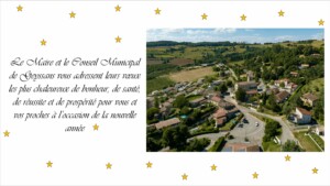Le Maire et le Conseil Municipal de Geyssans vous adressent leurs vœux les plus chaleureux de bonheur, de santé, de réussite et de prospérité pour vous et vos proches à l’occasion de la nouvelle année.