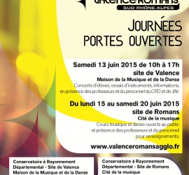 LE CONSERVATOIRE > RENTREE 2015-2016 PORTES OUVERTES DU 13 AU 20 JUIN INSCRIPTIONS JUSQU’AU 30 JUIN   Le Conservatoire à Rayonnement Départemental (CRD) de Valence Romans Sud Rhône-Alpes forme, chaque année, plus de 1 600 élèves de tous âges, en musique et danse. Le Conservatoire s’appuie sur deux sites aux équipements de qualité : la Maison de la musique et de la danse à Valence et la Cité de la musique à Romans. Les équipes accueilleront le public, sur ces […]