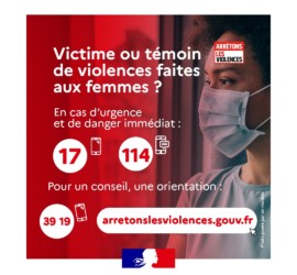 Afin d’enrayer la propagation du virus de la Covid-19, le Président de la République a décidé de renouveler le confinement mis en place au printemps afin de réduire à leur plus strict minimum les contacts et déplacements sur l’ensemble du territoire du 30 octobre au 1er décembre 2020. Les dispositifs destinés à protéger les femmes victimes de violences conjugales ainsi que leurs enfants demeurent actifs et opérationnels.