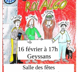 Le Coin aux Livres propose le conte du Roi Algo, Dimanche 16 février à 17h Salle des fêtes de GEYSSANS Public à partir de 5 ansOrganisé par Le coin aux livresParticipation Libre Download the PDF file .